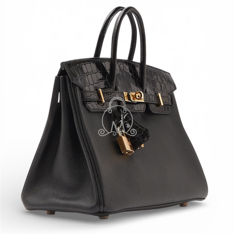 The Hermès Birkin 25 Crocodile Touch is a refined expression of craftsmanship, combining classic leather with exotic accents for a distinctive and elevated look.