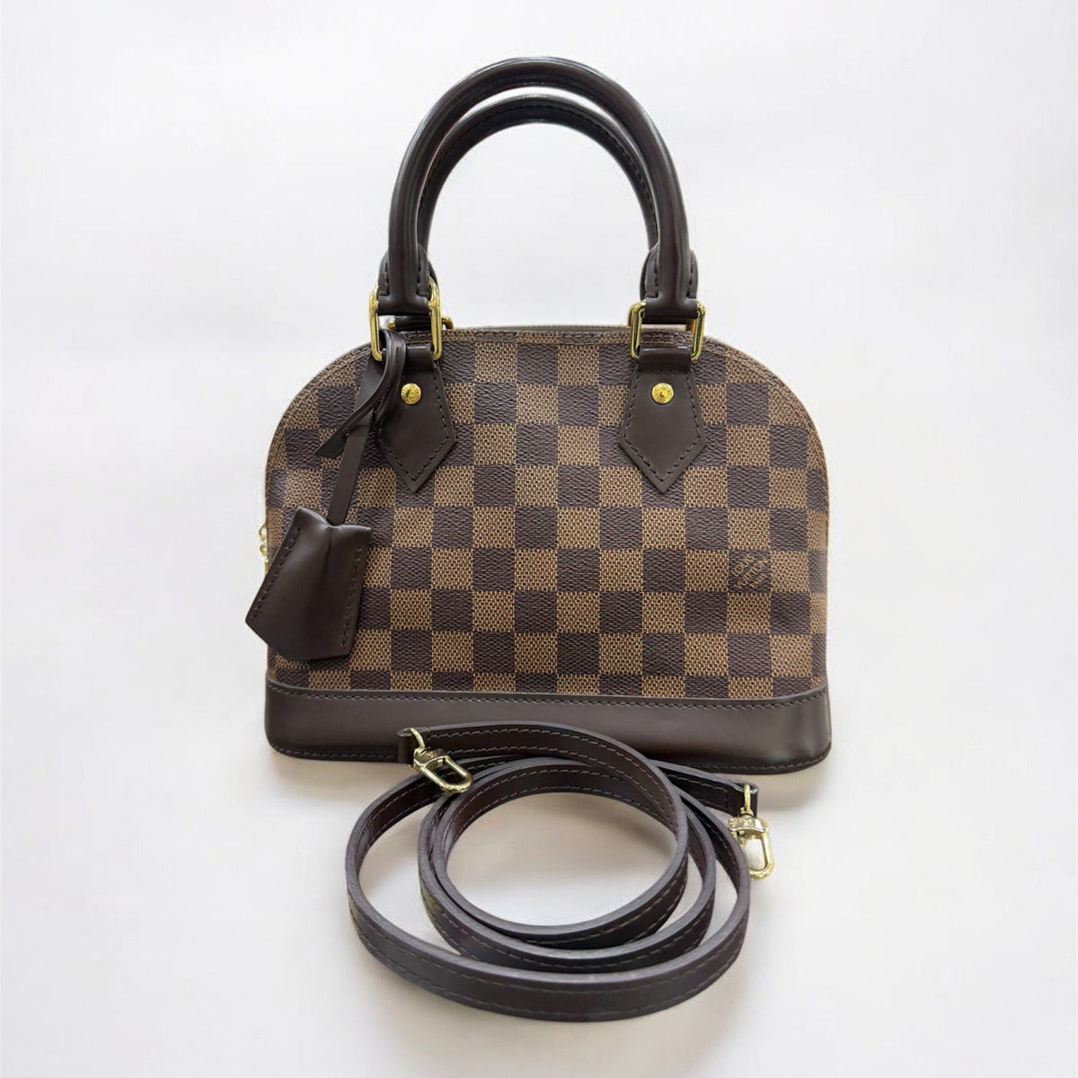The Louis Vuitton Damier Ebene Alma BB is a timeless icon that embodies elegance, heritage, and exceptional craftsmanship. Crafted from the signature Damier Ebene coated canvas, this sophisticated mini handbag features structured lines inspired by the original Art Deco design, complemented by smooth brown leather trim and refined gold-tone hardware.